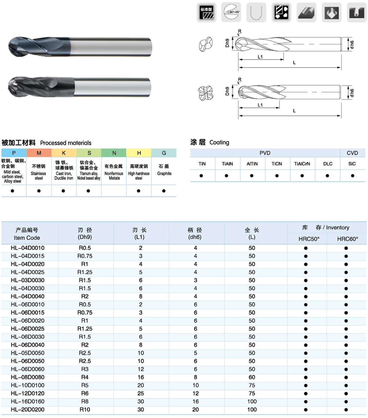 硬質合金球頭銑刀
